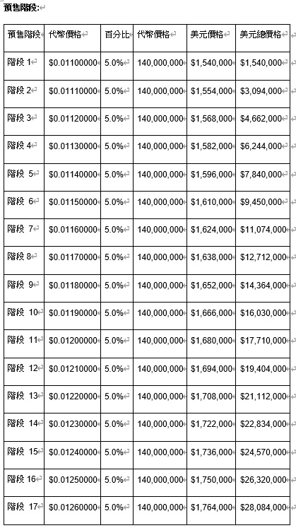 軟上限 - 16,030,000美元 - 1,400,000,000代幣