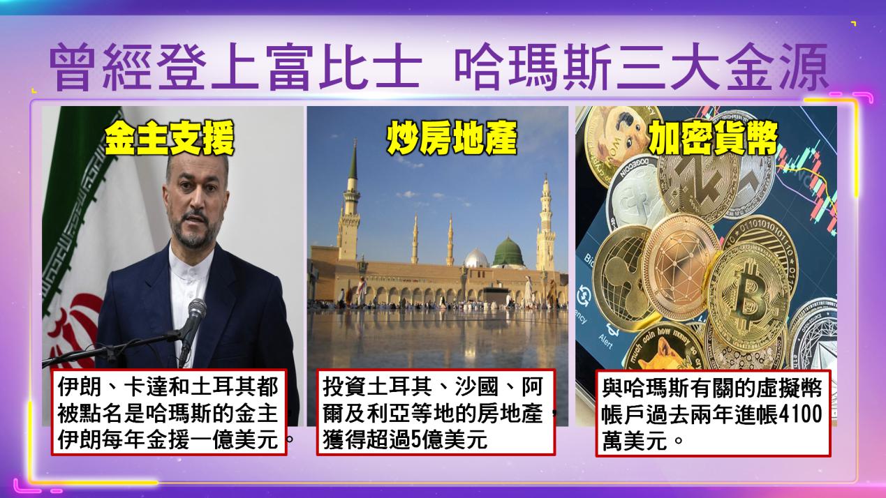 2、炒房:2022年哈馬斯透過投資土耳其、沙烏地阿拉伯、阿爾及利亞等地的房地產或建築業,獲得超過5億美元(約新台幣161億元)的資金收入。