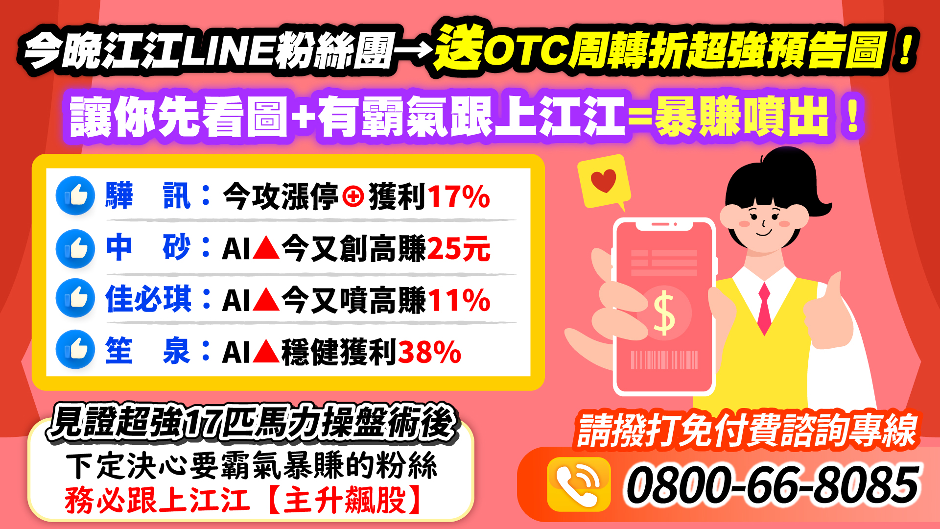 今晚送OTC周轉折超強預告圖!先看圖+有霸氣=暴賺噴出!驊訊⊕賺17%、中砂創高賺25元、佳必琪噴高賺11%、笙泉賺38%!新主升飆股不等人→霸氣跟上江江!