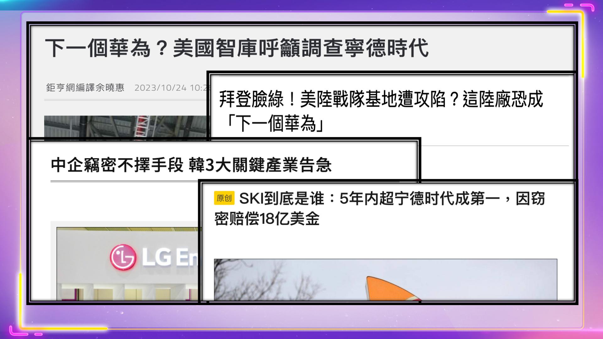 大家好,我是興哥,美國對於中國的制裁,從華為開始往其他的產業鏈擴散,目前被盯上的是電池的寧德時代。寧德時代身為全球的電池龍頭,市佔率高達3成,也讓美國對其電池技術開始產生監管的機制。在這幾年雖然鋰電池由高價往下跌,跌幅將近6成之多。考試趁著市場低迷的同時,寧德時代非但沒有減產,而是在全球的鋰礦大力地做鋪成。可以花了45億在玻利維亞去取得鋰礦,持有全國的1/5。那整體市場,為了去防堵寧德時代,其實美國給的政策就是說因為這些電池他會有所謂的互聯網、聯網,所以有可能會造成國安的疑慮和危機。因此在這樣的過程中,我們認為台廠並沒有材料的優勢,但是有零組件的優勢。所以可以觀察中碳、新普、統振,其中的新普本益比低、獲利高、 投信布局,可以拉回多做留意。興哥抖音