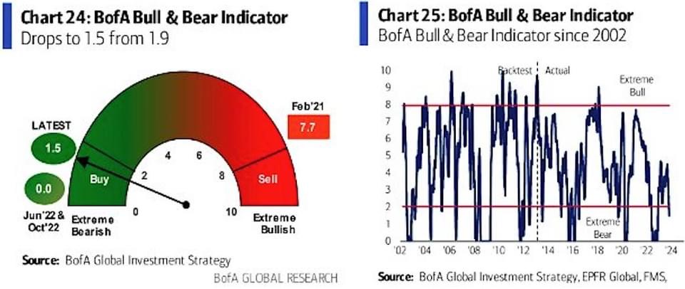 BofA 多空指標上週觸發買入訊號後自 1.9 繼續下跌至 1.5 (圖 1-3), 分析師 Hartnett 表示上週科技股仍流入資金 20 億美元,但警告 S&P 500 可能繼續下跌至...