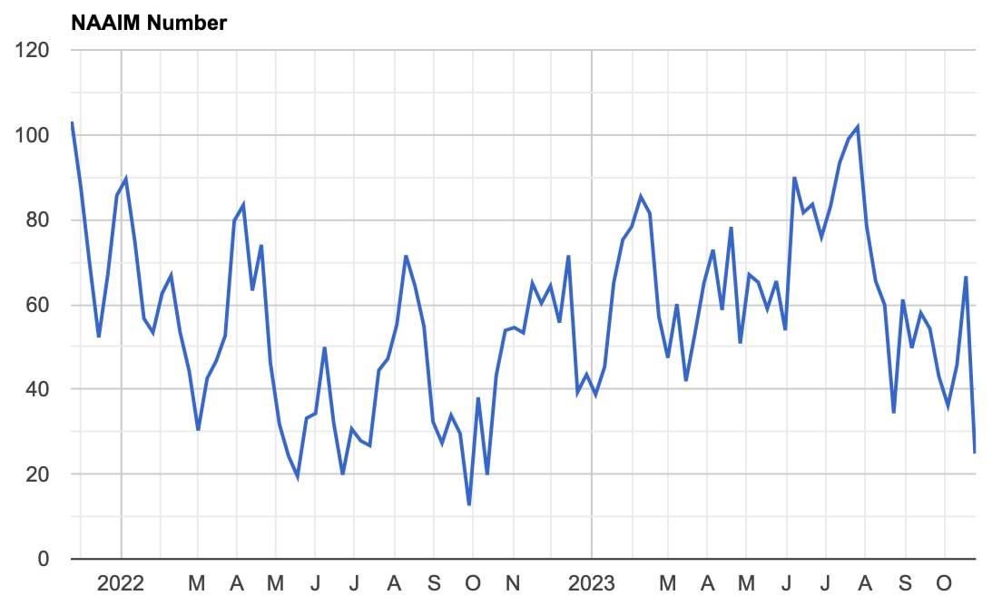 NAAIM 主動投資基金經理人持倉降至 2023 年最低水平 (圖 1-2),華爾街對美股後勢看法分歧,巴克萊資本分析對沖基金、共同基金持倉水位低於長期平均,認為…