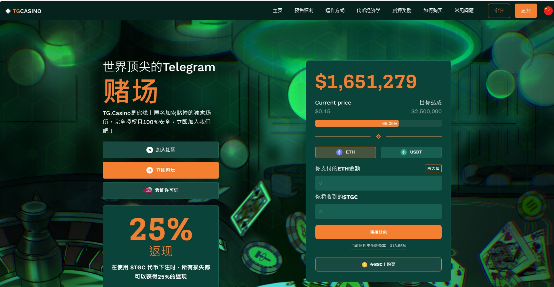在預售期間大家可以用$0.125美元購買$TGC,是以此低價格獲得$TGC唯一機會,而預售時也是購買$TGC最佳時機。 擁有後可立即開始質押以獲得4000%+ APY被動獎勵! 在$TGC預售中投資5千美元以上更可獲得獨家NFT,同時TG. Casino在Tg上市後,預售期之買家將獲得獨家獎勵。 其中40%代幣被銷毀,60%代幣作為獎勵分發。