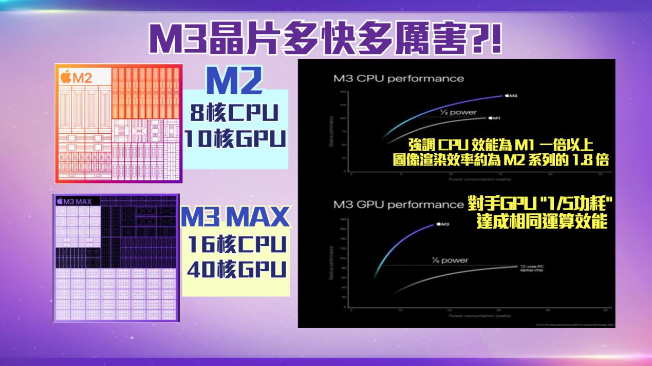 3奈米M3晶片:蘋果這次推三款3奈米M3晶片,效能大躍進的關鍵,就是在台積電獨家代工!