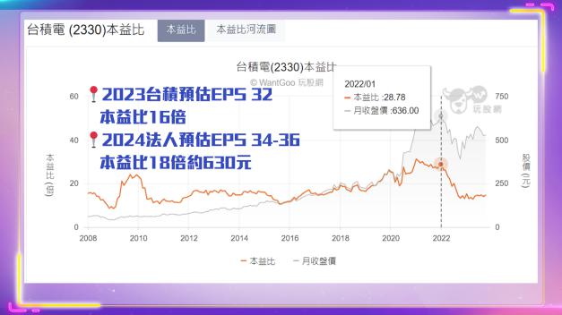 蘋果推出M3最強的CPU,受惠的居然是台積電,我們都知道蘋果今年的手機賣的不好,所以順勢推出M3這個CPU給筆記型電腦MacBook Pro。其中M3強大的性能加入AI、光影追蹤和貼圖的圖層。基本上是達到了低工耗卻高能效的態度。那麼幕後的推手就是我們台積電,所以大家就知道了,現在3奈米的先進製程,不但for手機的A17 Pro,也for筆電的M3。通通都是台積電供貨給蘋果,台積電的股價位為什麼沒有太大的起色,在於。1.台積電的殖利率太低,只有2%。當美國科技類股反彈的時候,台積電才會反彈。而台積電法人對他的目標估值,基本上在於今年度應該賺32塊,明年度應該賺35塊左右。而現在的本益比來說,台積電的低標應該就是500-515元,高標今年應該就是550-560左右,不要去追高。反過來說,美股的本益比開始往上拉,台積電能夠賺了35-36的時候,台積電的股價大概就有機會可以挑戰600元的關卡,提供給大家參考。投資大小事,我來幫你試。