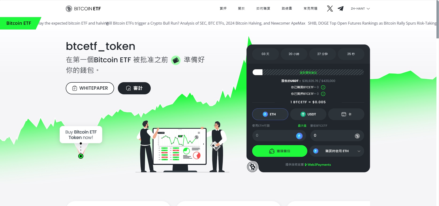 BTCETF以ERC20代幣形式發佈,旨在把美證監會通過現貨比特幣ETF之利好轉化自身回報,它同時設有日後縮減整體發行量機制,一旦完成里程碑更會送毀部分代幣降低交易稅使代幣更進一步增值。