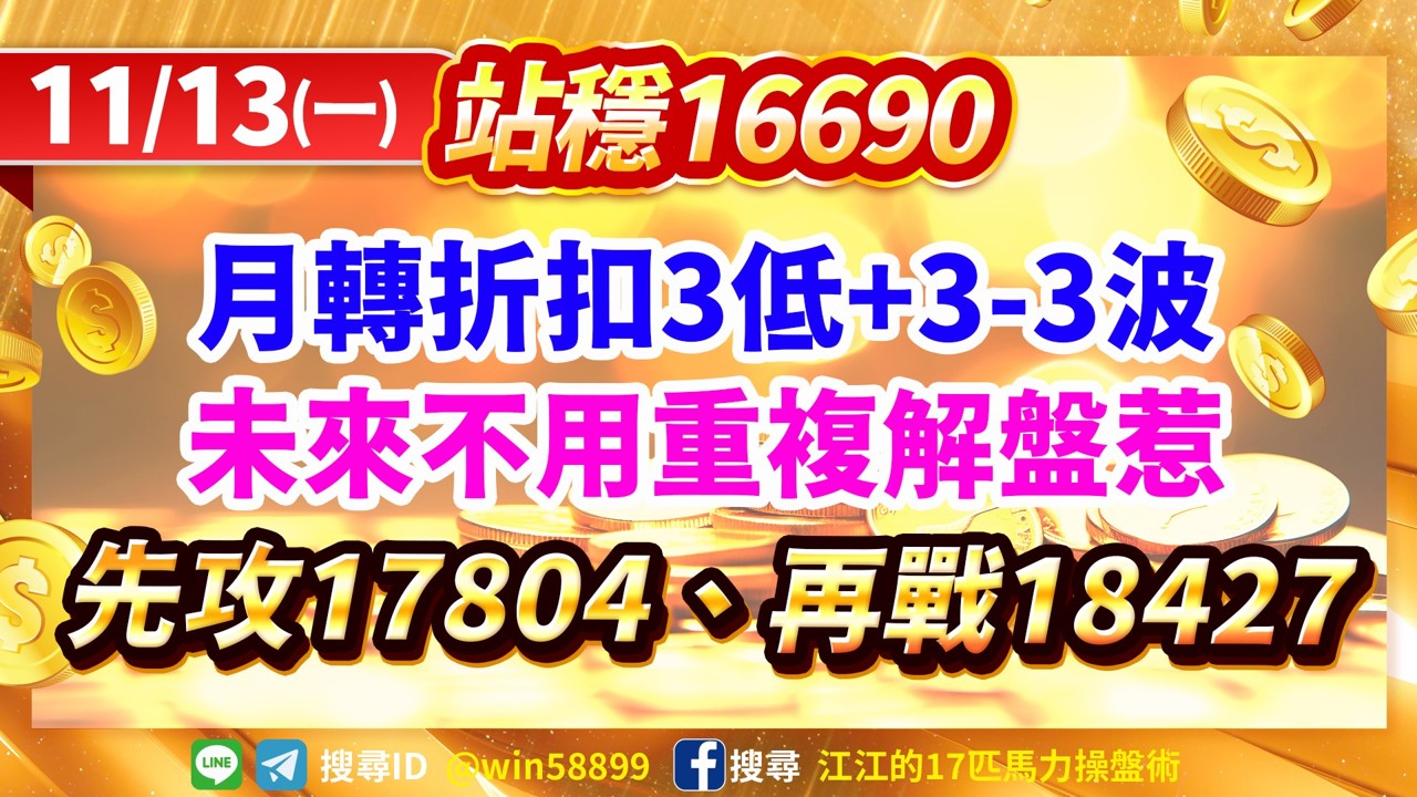 台股月轉折扣3低+3-3波→未來先攻17804、再戰18427!