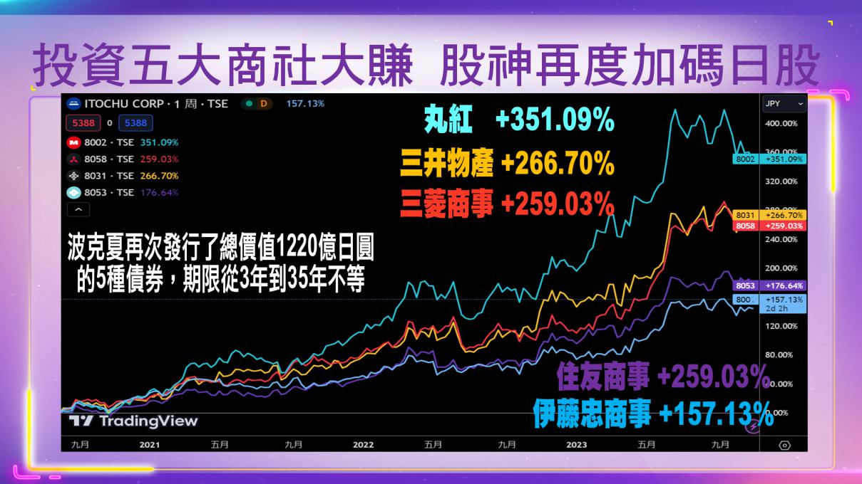 報導指出市場普遍預期波克夏,此次發債籌得的日圓資金將用來投資日本股市。外資證券操盤手指出,「除了預期波克夏可能增持商社股外,市場也猜測可能會進行新投資,投資銀行股、汽車股」。波克夏已將日本5大商社持股比重平均提高至8.5%以上。波克夏表示打算長期持有這些日本投資,未來對這五家日本企業的持股比重可能會拉高至9.9%。