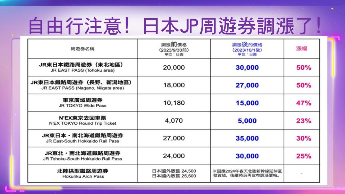 新冠疫情後,日圓一瀉千里,日本人沒錢出國,又面臨海外觀光客挾貨幣優勢大舉入境,造成當地消費物價攀升,甚至傳出東京六本木一碗拉麵售價1萬日圓(約新台幣2200元)。日本旅遊逐漸質變,「價格雙軌制」可能是今後趨勢,如果你不是日本人,得多花一點。日媒報導,JR集團本月起大幅調漲專門賣給觀光客的「Japan Rail Pass」價格,漲幅49%至77%不等,其中包括旅遊人士最喜歡的7日周遊券。之所以漲價,多少也有弭平日人心理不平衡的考量。
