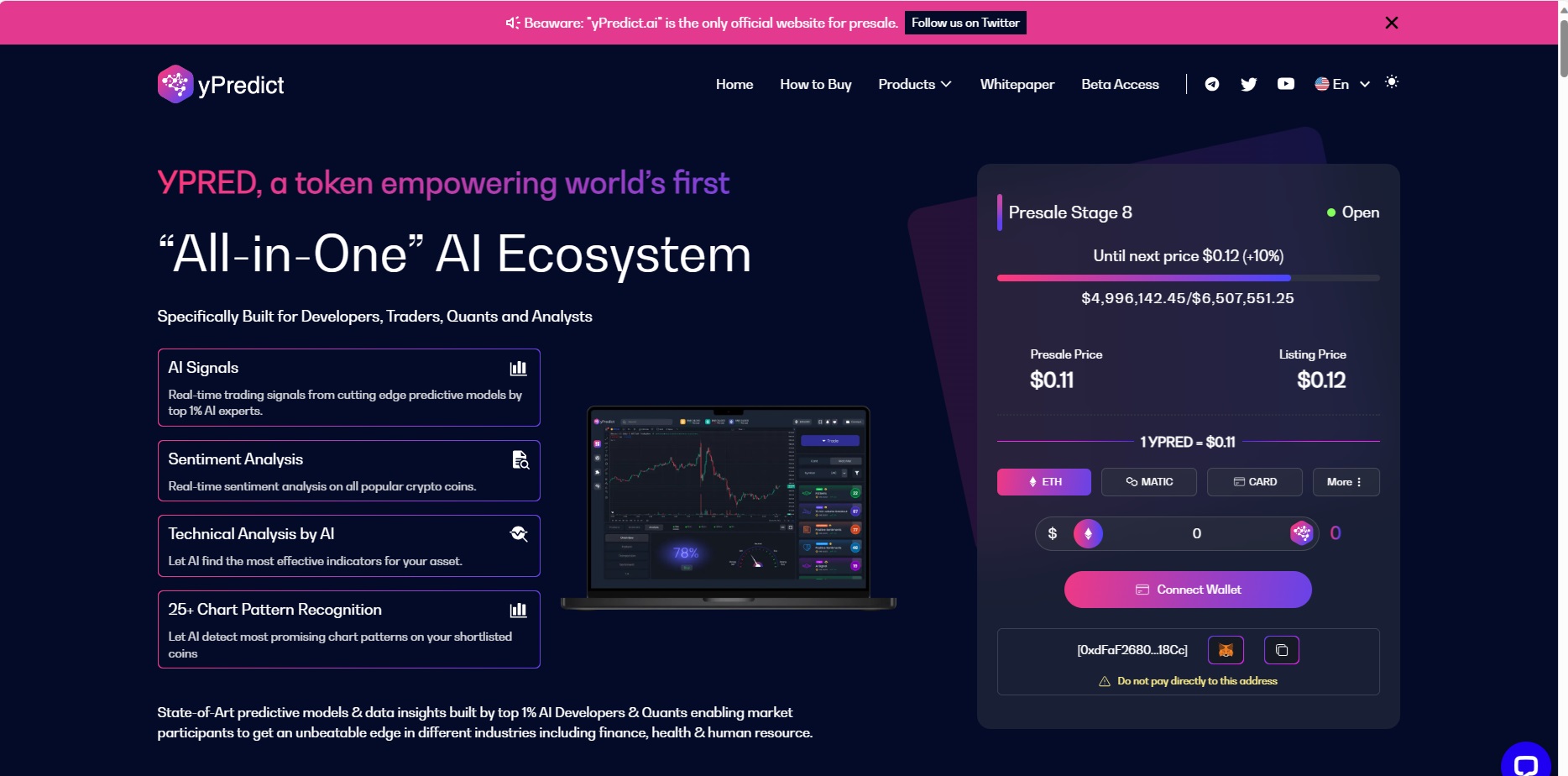 在正在進行的預售階段,YPRED 代幣的價格為 0.03889 美元。到代幣進行首次交易所發行時,價格將上漲 15.7% 至每個代幣 0.045 美元。