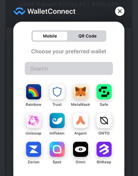 Wall Street Memes 預售還支援 WalletConnect 選項下的大量其他選項。