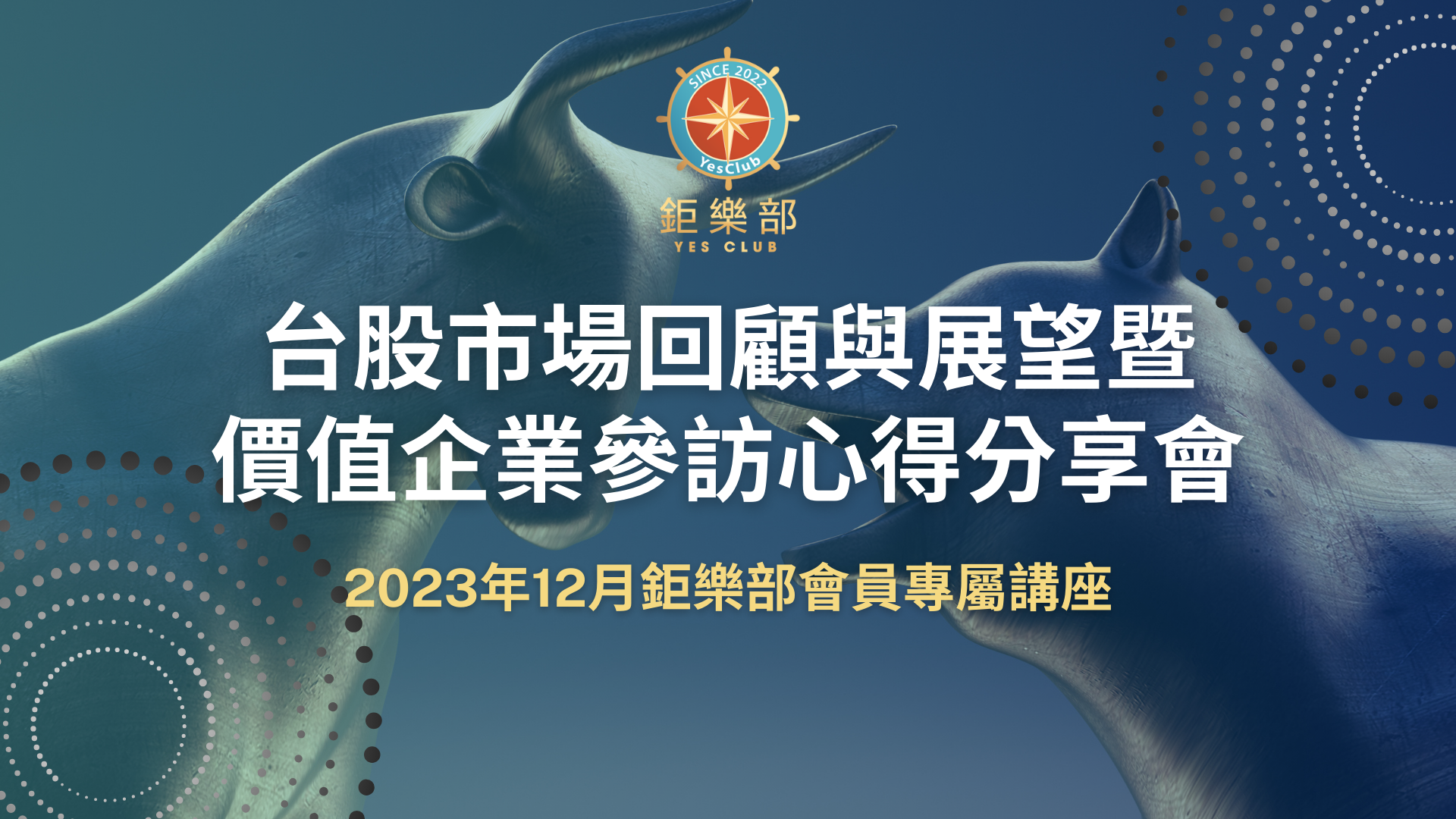 2023年進入尾聲,在迎接2024年之際,鉅樂部例會將為大家整理今年台股市場重要回顧,以及展望2024年值得關注的產業重點和投資議題,同時也會持續跟會員朋友分享低估值價值企業參訪心得,請務必參加線上講座,跟我們一起探討哦!