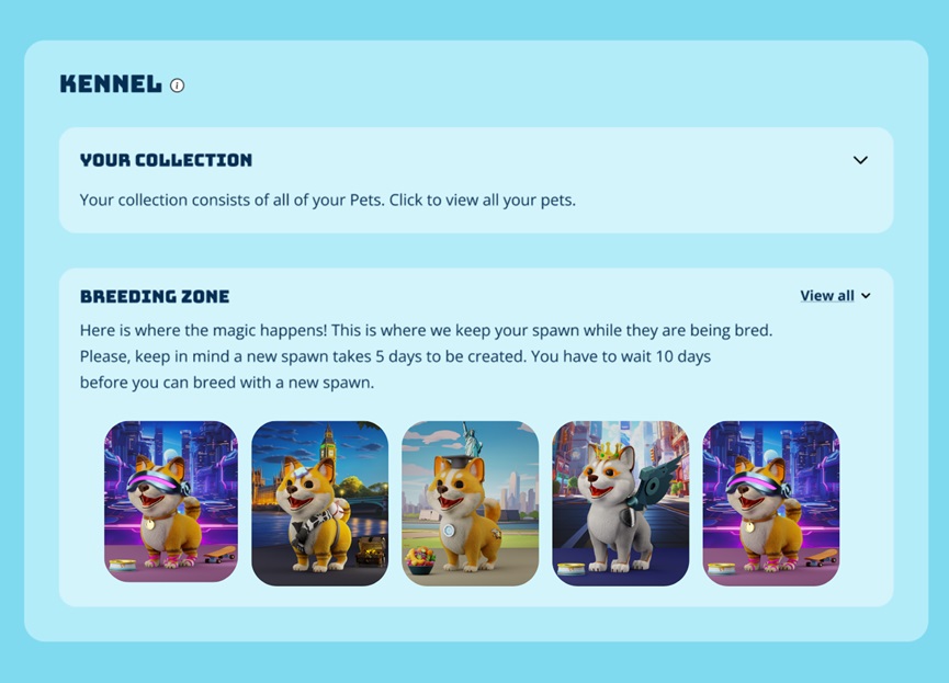 在等待生成過程完成的同時,新寵物將在使用者的狗舍中顯示為待定狀態。NFT擁有者還將看到一個倒數計時,顯示距離他們的全新寵物生成還有多少天。