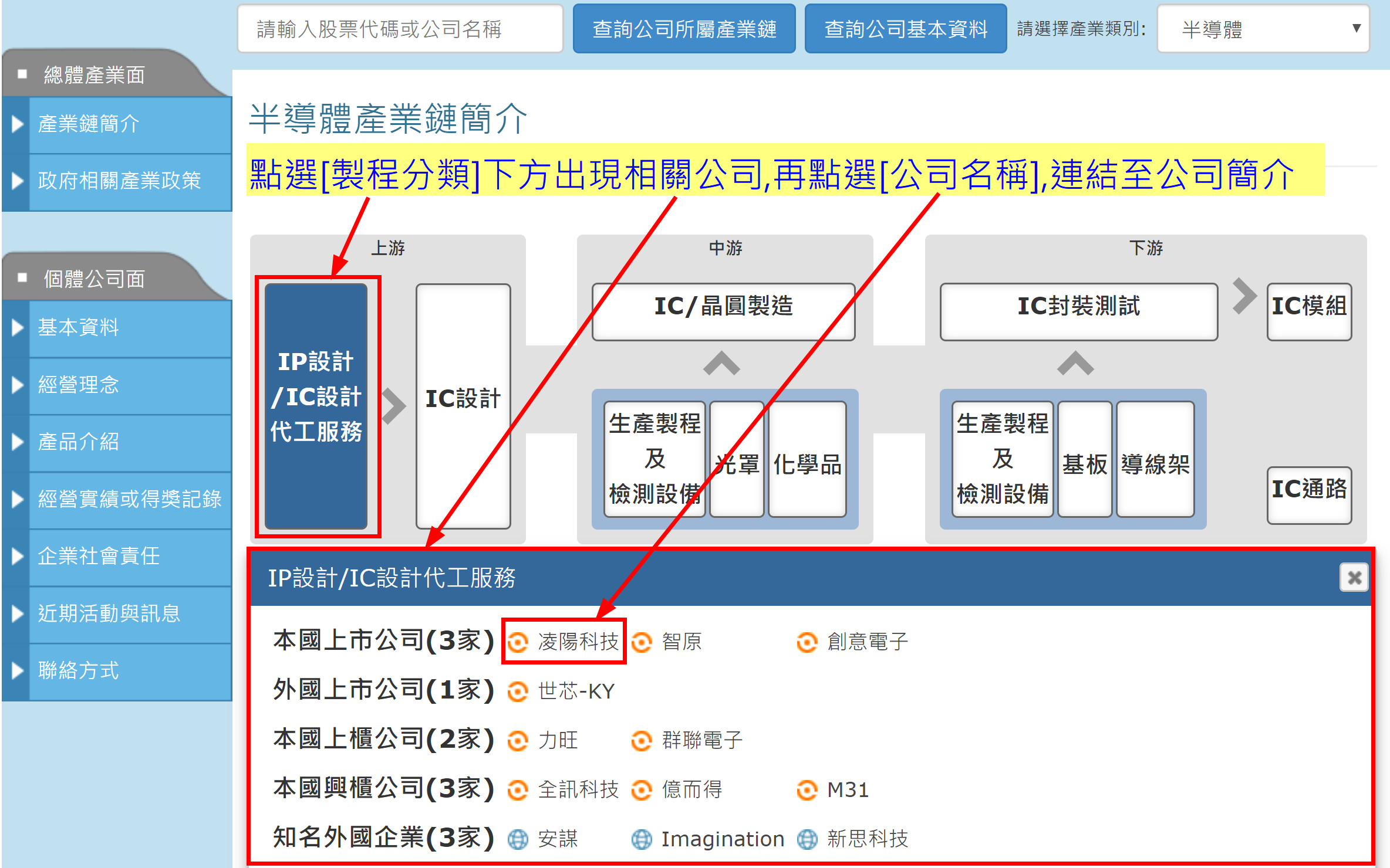 3. 點選[製程分類]下方出現相關公司,再點選[公司名稱],連結至公司簡介或公司網站