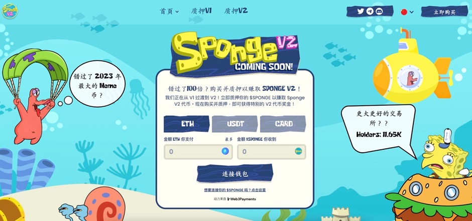 但這一次,它不僅僅是為了駕馭市場浪潮——Sponge V2 在其生態系統中引入了Play-to-Earn (P2E) 實用程式。使用Sponge.vip 上的小部件購買或質押$SPONGE 以獲得獎勵 V2 代幣,然後繼續質押你的 V1 Sponge 以賺取更多 Sponge V2。