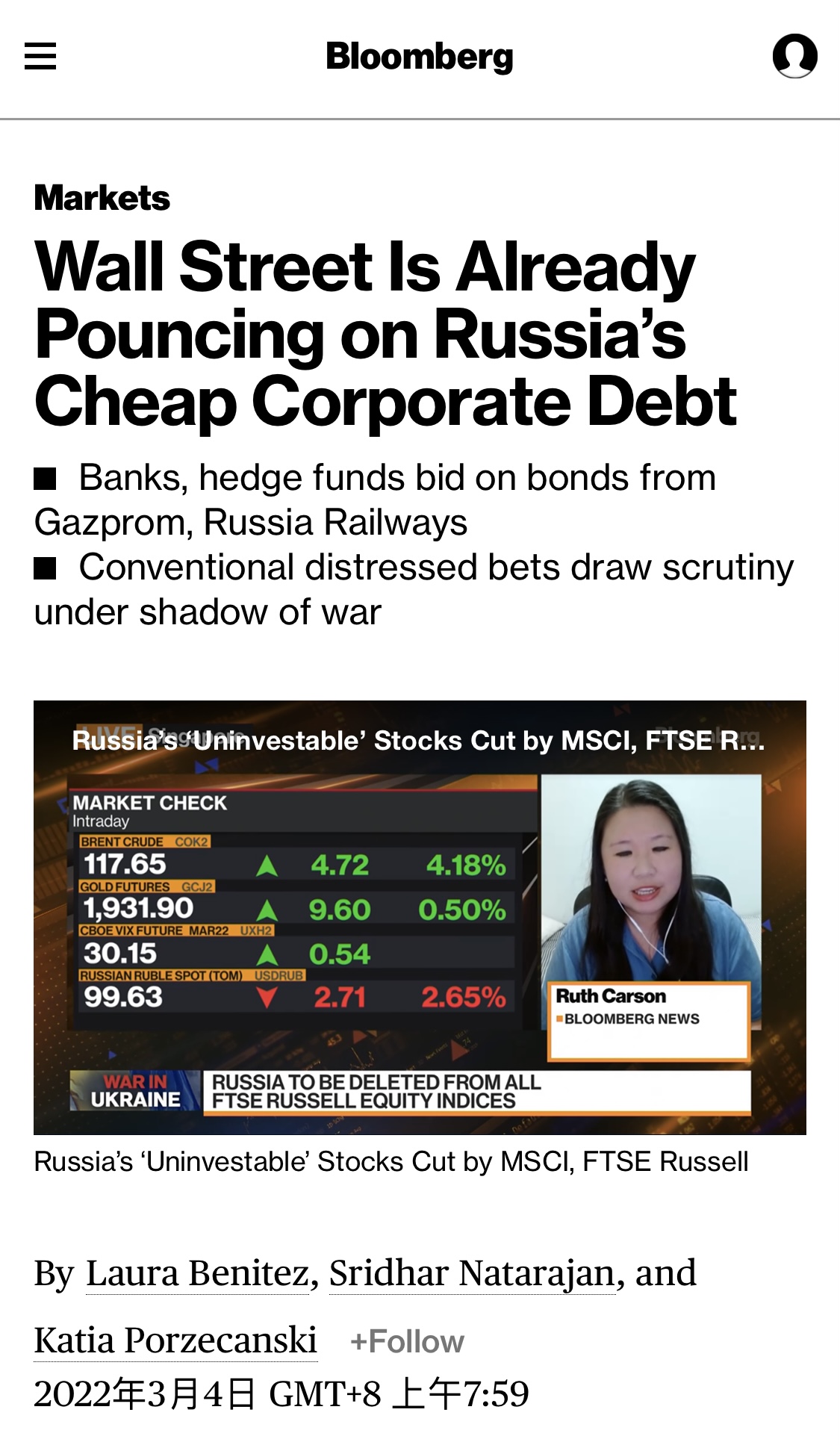 📌一面制裁聲中、華爾街抄底俄羅斯公司債
