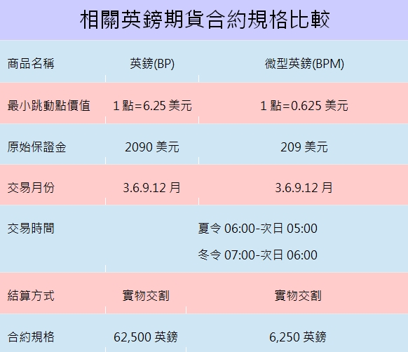 英鎊、微型英鎊期貨比較