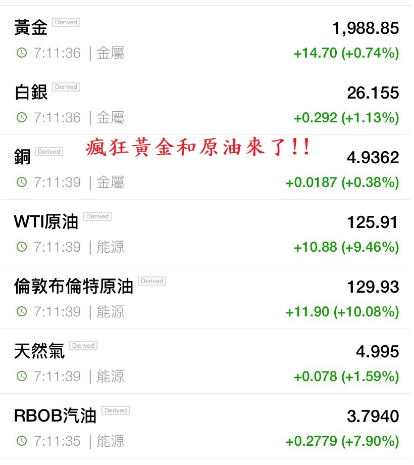 各種原物料報價噴出