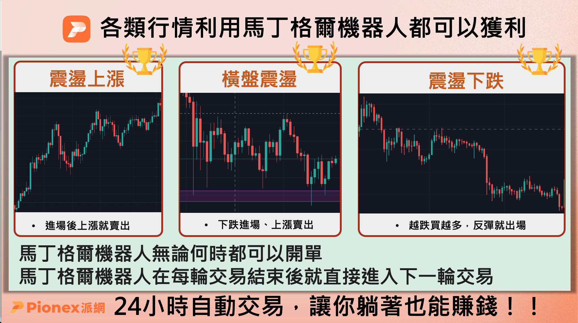 由於Pionex的馬丁格爾機器人沒有使用槓桿,並且可以自由設定下跌多少百分比再分批抄底,因此安全性較高,只要選擇的資產是優質資產,即使短期產生一定的回撤,等資產價格反彈的時候就可以盈利。