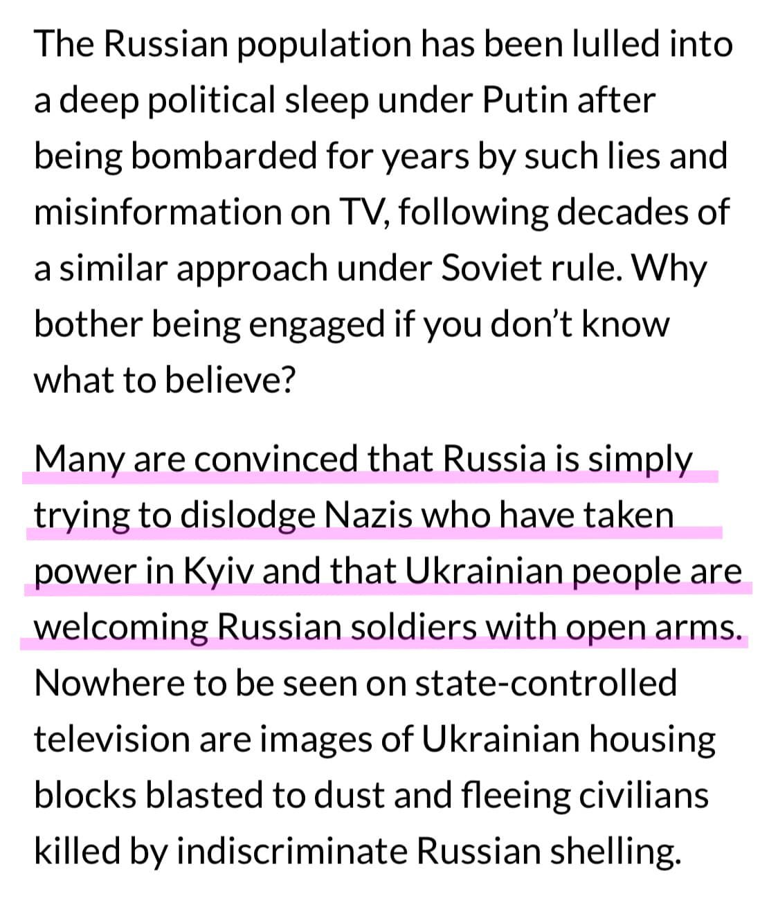 📌別期待俄羅斯陷入泥沼,普丁地位出問題,俄羅斯人民被洗腦,認為入侵烏克蘭是要去除基輔的納粹勢力、俄軍受到烏克蘭人民高舉雙手歡迎