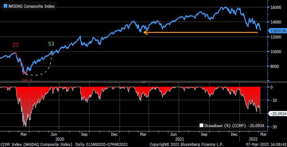📌Nasdaq跌到技術熊市(🔻20%)、過去一年漲幅全歸零