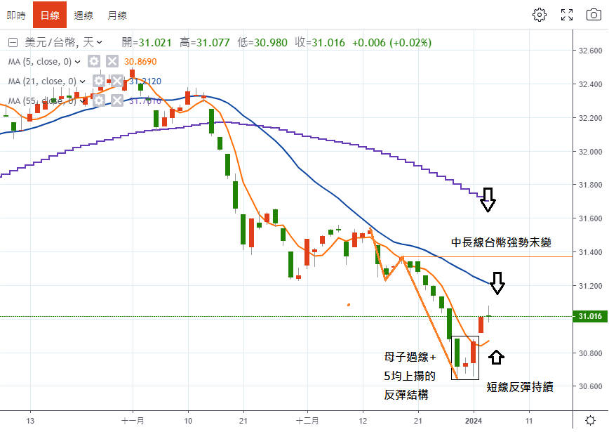 美元短線反彈持續,目前技術面無礙台幣中長多格局