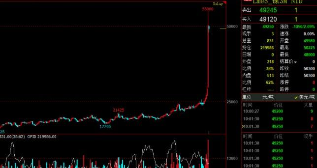 當天,倫鎳價大漲73.93%,創出歷史新高。
