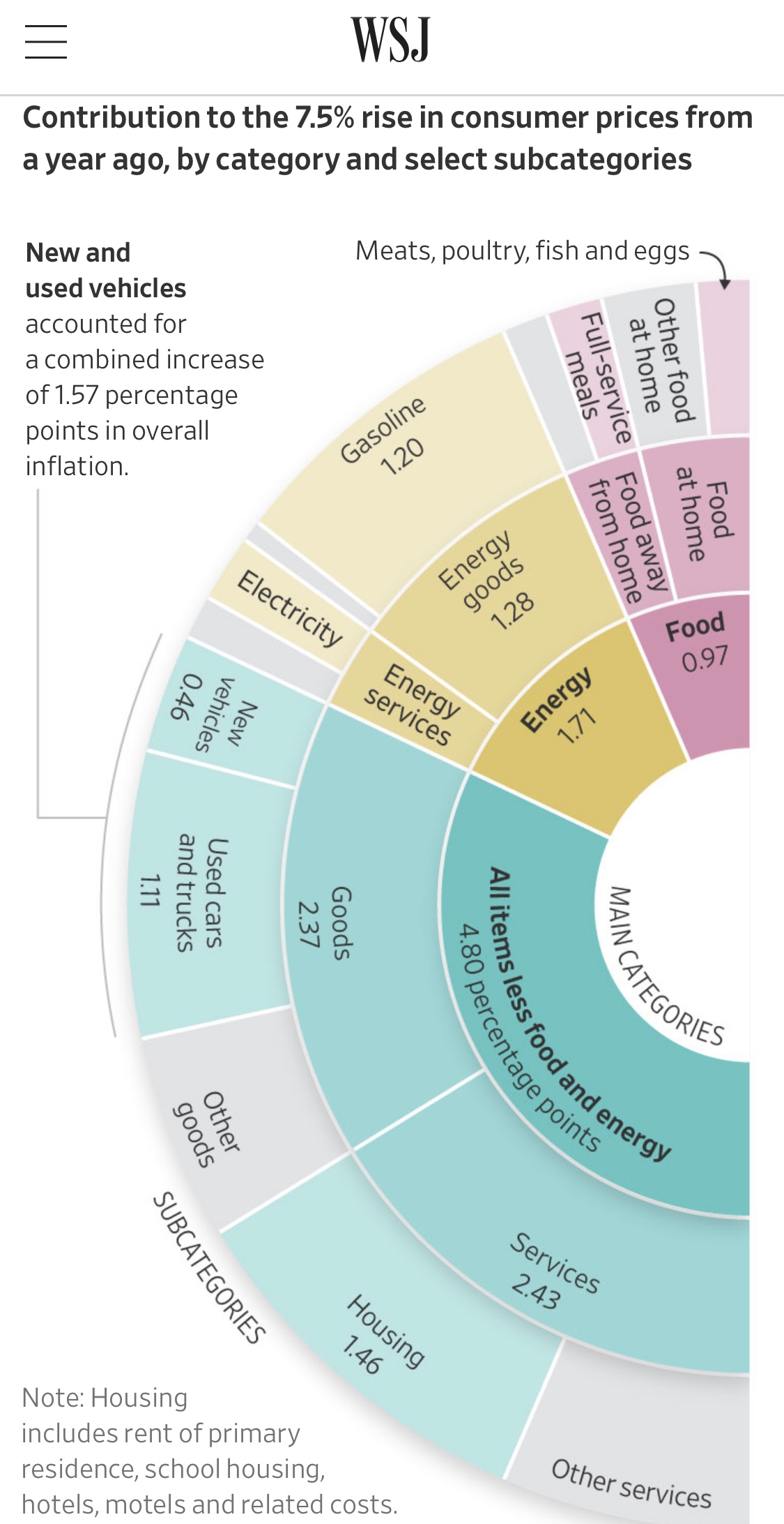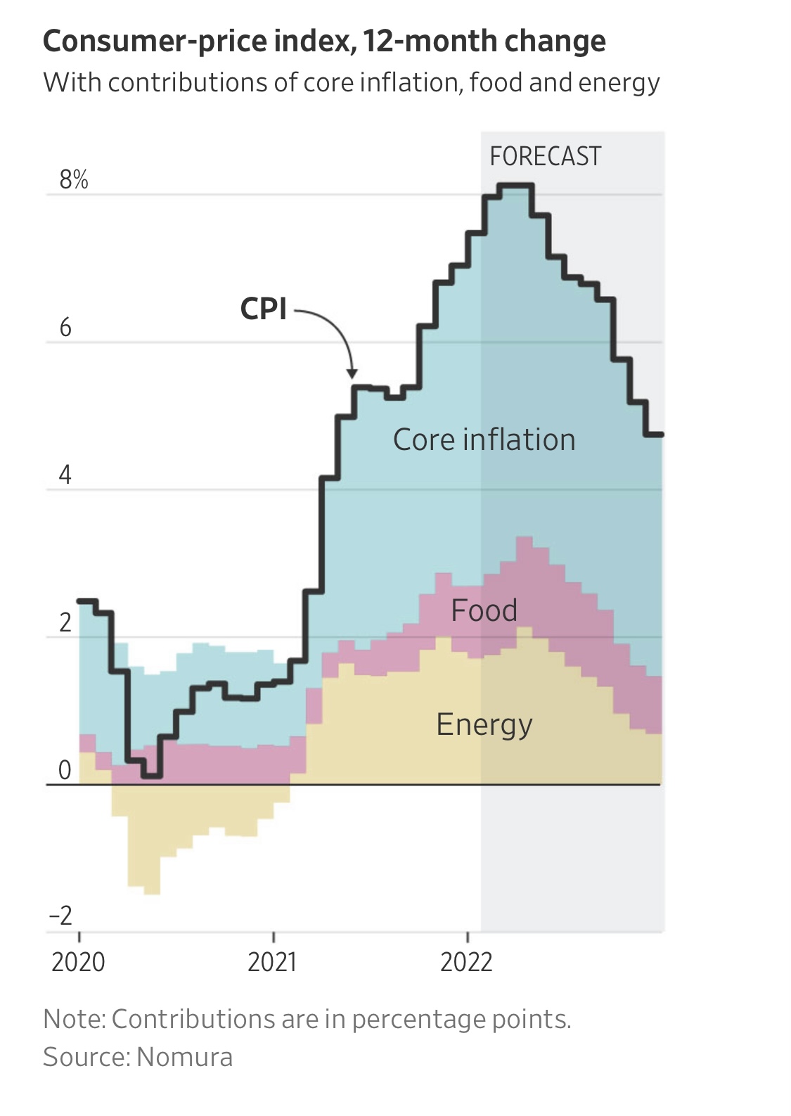 📌華爾街日報3/7報導,圖解CPI組成成分,經濟學家還是預期年底降到2.7~4%