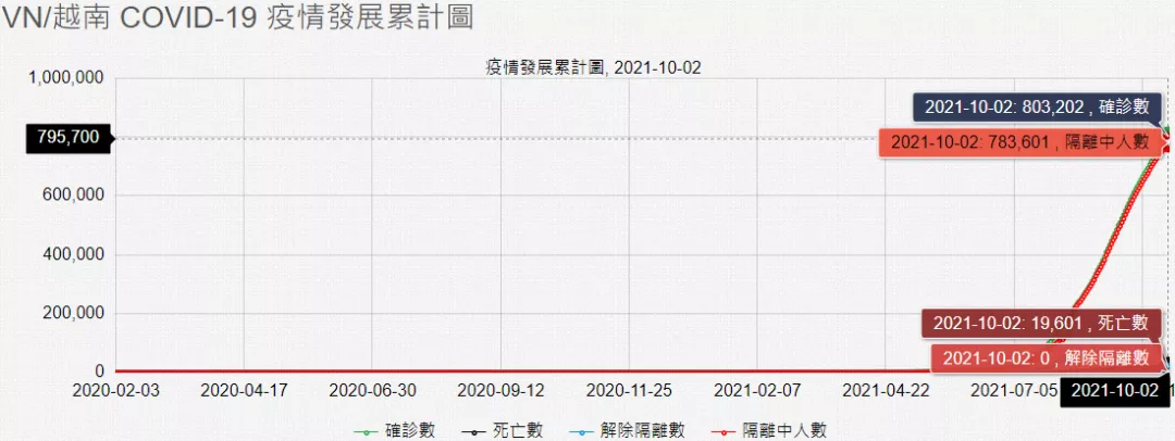從7月開始越南疫情爆發,到10月確診80萬,其中一半在主城胡志明市。