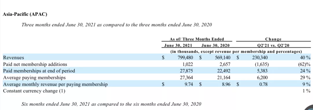 據奈飛第二季度財報,截至今年6月30日,奈飛實現營收73.42億美元,淨利潤13.53億美元。來自於歐洲、中東和非洲地區市場的流播放服務營收爲24.00億美元,高於上年同期的18.93億美元;來自於拉丁美洲地區的營收爲8.61億美元,高於上年同期的7.85億美元;來自於亞太地區的營收爲7.99億美元,高於上年同期的5.69億美元。