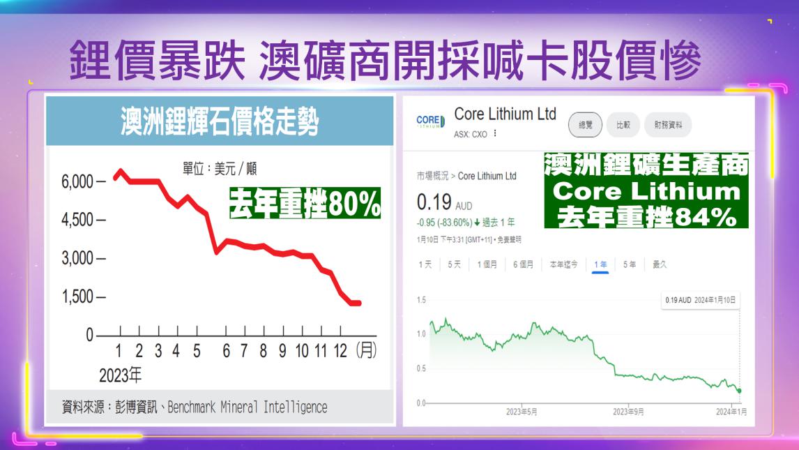 鋰價在過去一年重挫,已迫使澳洲鋰礦生產商Core Lithium暫停開採這種電動車電池所需的原料,專家預期,未來可能有更多大型鋰礦商跟進暫停採礦。彭博資訊報導,Core Lithium在鋰價大跌之際,為了降低現金成本,已暫停採礦,引發其股價收盤暴跌近12%。