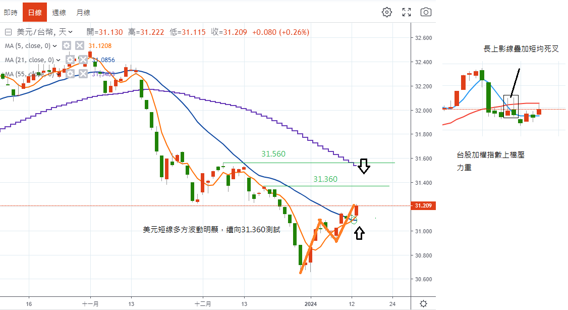 美元反彈持續疊加台股尚弱勢,美元續測31.360