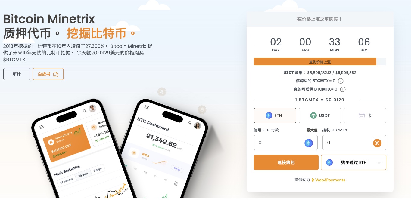 Bitcoin Minetrix是第一個質押挖礦ERC-20代幣!它將以首次代幣發行(ICO)面向公眾進行預售,Bitcoin Minetrix將重塑雲端挖礦格局,允許用戶安全高效地進行雲端比特幣挖礦,以更環保更安全方法獲得更穩定收益。