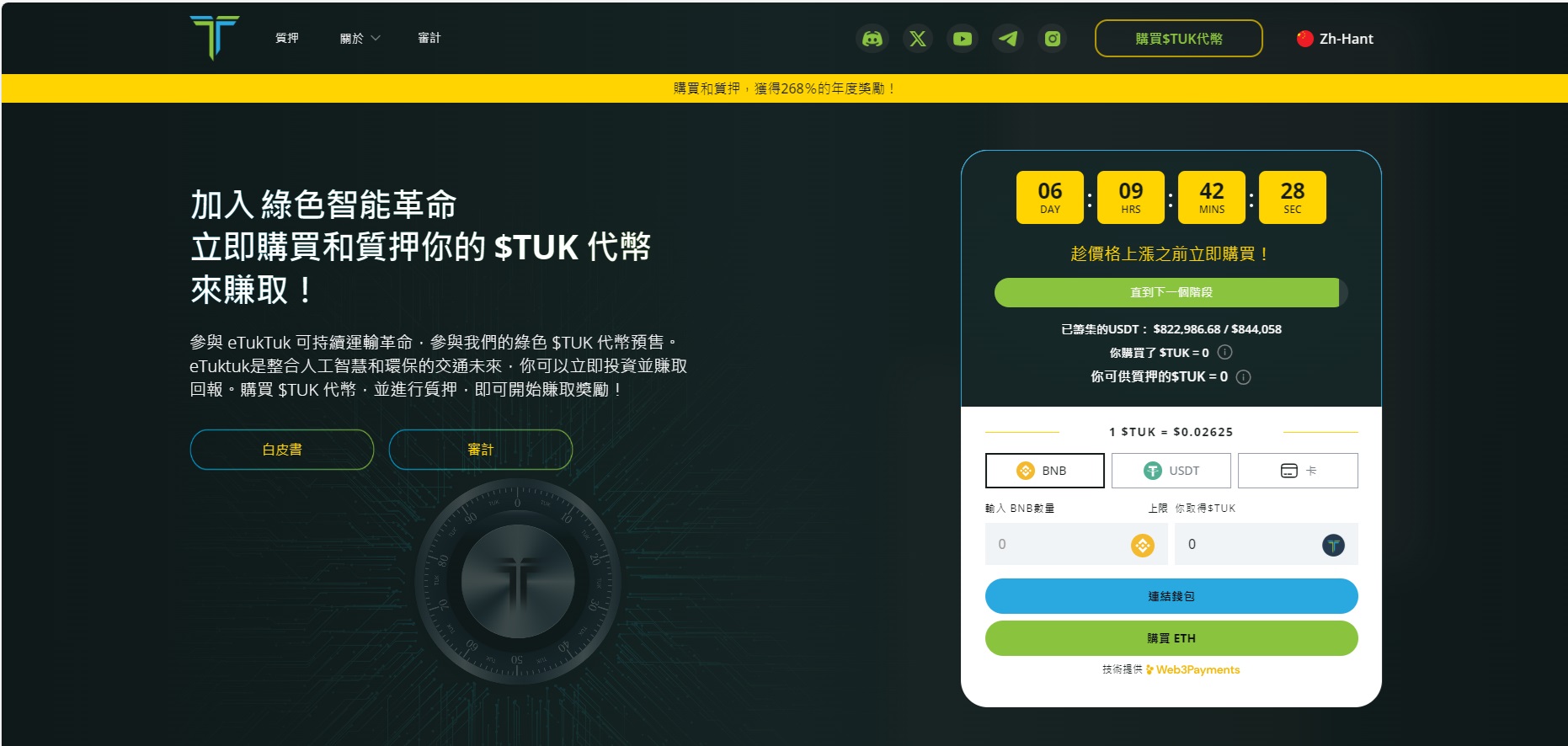 早期買家可以在社區銷售期間以0.024美元的初始價格購買$TUK代幣, eTukTuk進入市場的時機具有戰略意義,加密市場對融合可持續性和技術的項目越來越感興趣,特別是那些解決現實世界挑戰的項目。
