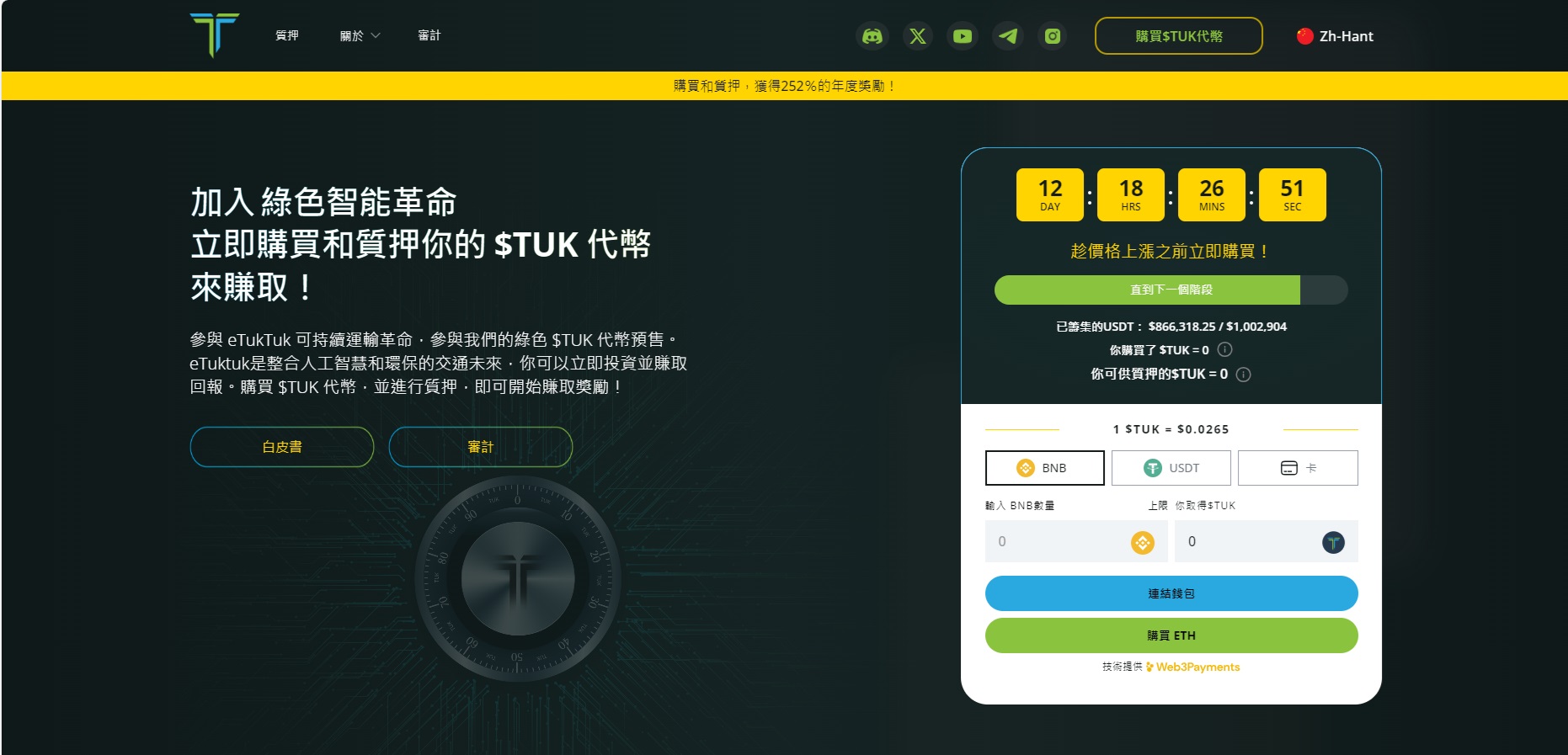 在投資前監測市場走勢和更廣泛的宏觀經濟狀況至關重要,鑒於eTukTuk在市場上的正確時機,早期買家可以在社區銷售期間以0.024美元的價格購買代幣,價格比其公開銷售價格0.04 美元低40%。