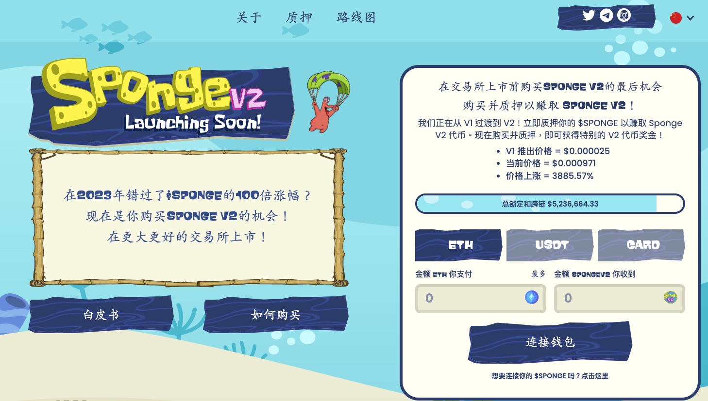 您押的V1代幣越多,押的時間越長,就能獲得越多V2代幣。一旦Sponge V1剩餘發行量耗盡,Sponge V2就會變得可以認領。快來抓住這波接力棒,拿下V2大熱門吧!