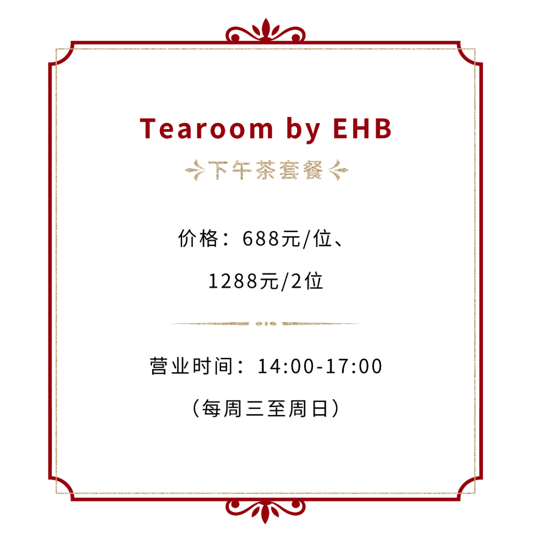 Tearoom by EHB下午茶有688元/位、1288元/2位可選擇,在此基礎上可以另外單點茗茶和香檳,也有定制魚子醬或伊比利亞火腿供選擇。整套下午茶宛如可移動的小花園,木盤是中國藝術家為EHB特別訂製的,各式精緻茶點配有Christofle餐具、Zalto酒杯,讓你盡享午後愜意時光。