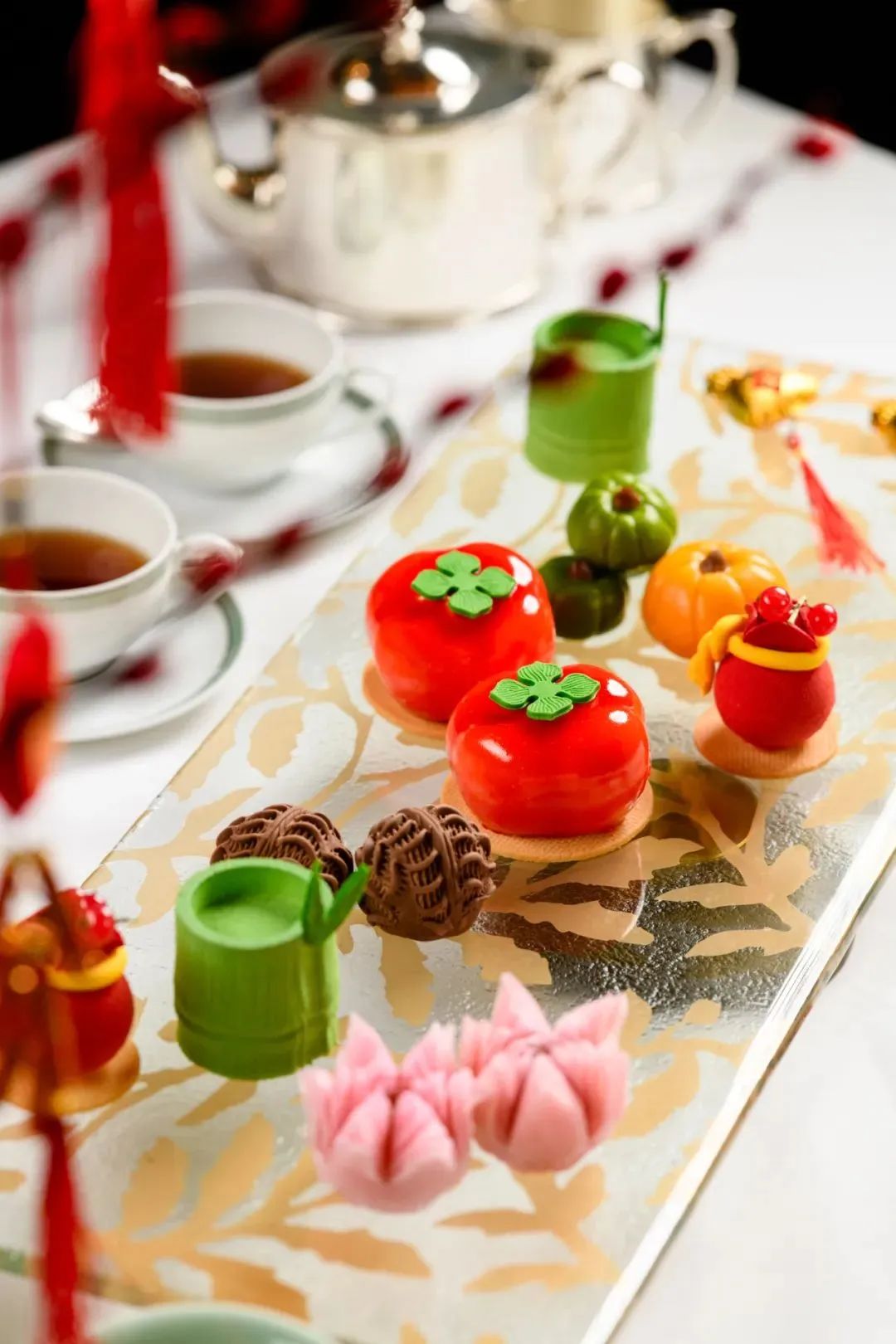 在這裡,你可以品嚐到限定的冬季下午茶,包含龍年大吉玫瑰巧克力慕斯、大橘大利抹茶柑橘蛋糕、新春爆竹乳酪覆盆子蛋糕等多款精選鹹甜點,每一款都做融入了中式元素,精巧誘人。
