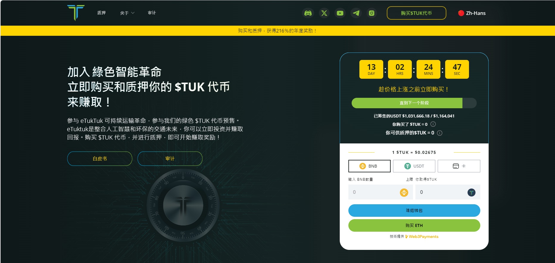 加密貨幣市場近日重現升勢,投資人部署時不妨留意獲得幣安BNB鏈的鼎力支持的eTukTuk。 eTukTuk是一種新的綠色加密貨幣,旨在促進發展中國家三輪車環保能源交通,並通過利用區塊鏈來縮小發展中國家的經濟差距。