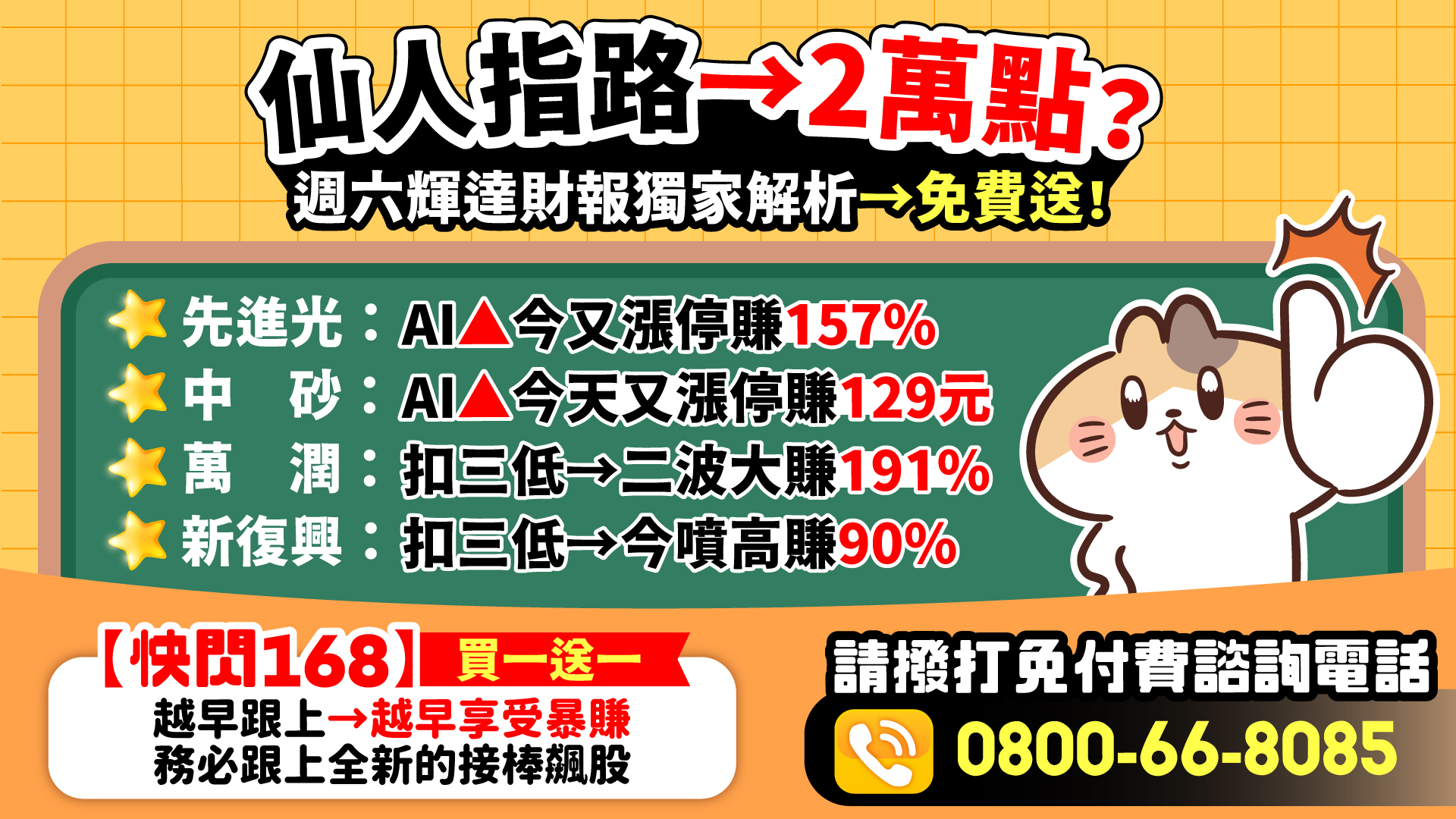 『快閃168』買一送一→跟上暴賺行列!