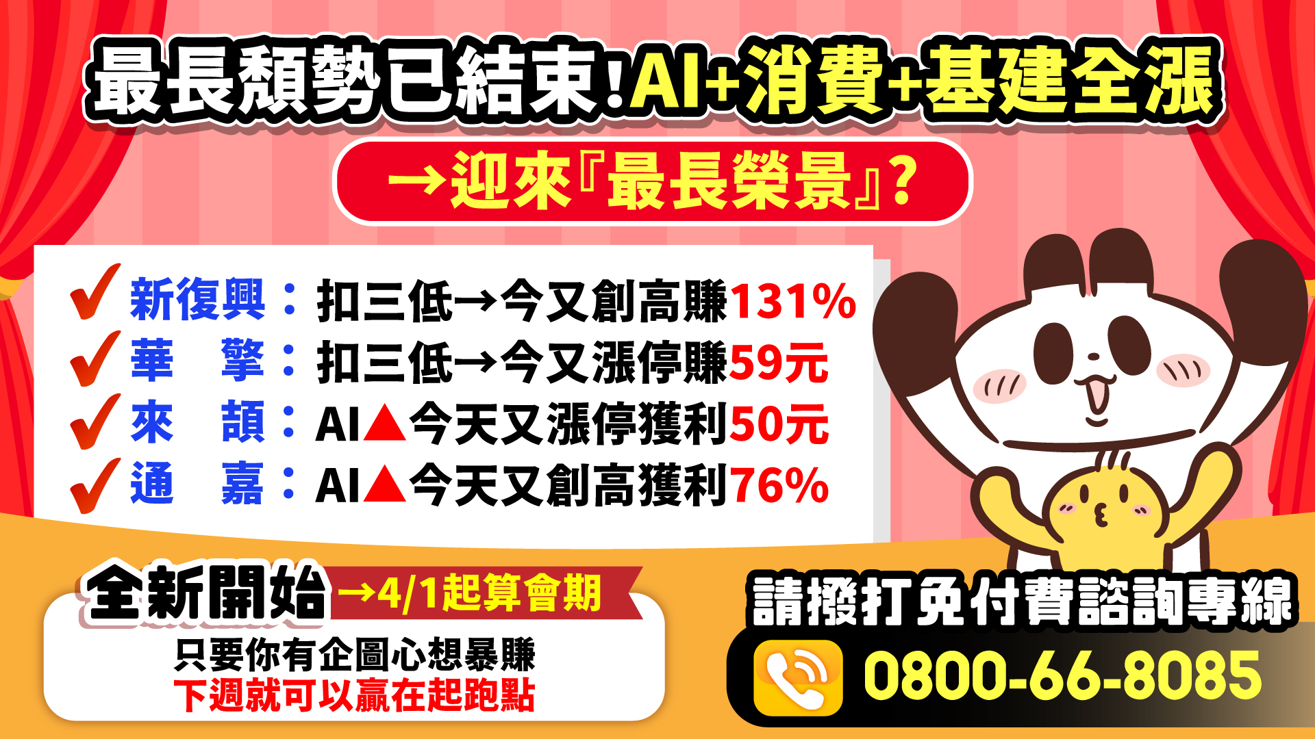 3/1(五)最長頽勢已結束!Al+消費+基建全漲→迎來『最長榮景』?