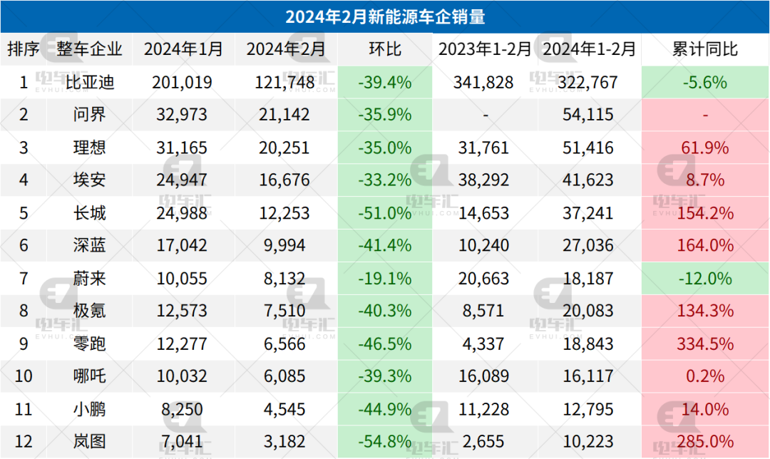 3月1日,一眾新能源車企相繼公佈2月銷售或交還成績。由於春節因素,幾乎所有新能源車企均較上季下滑。