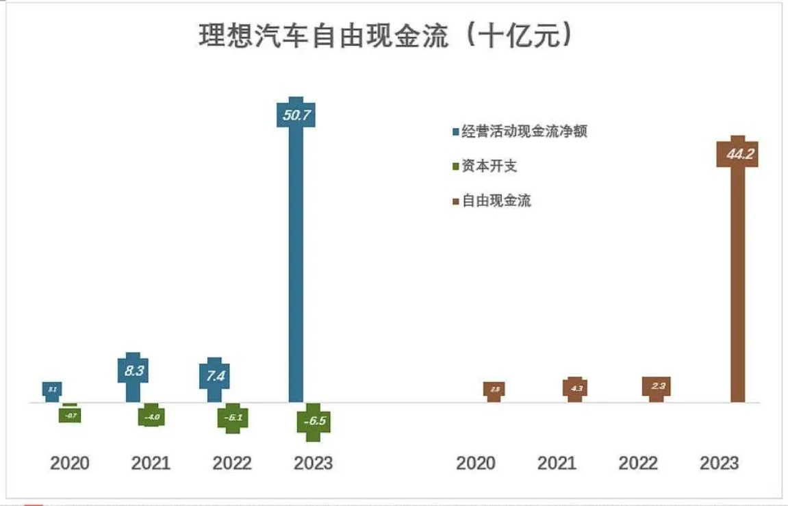 2023年,在支付65億資本開支後,理想汽車自由現金流仍達442億,未免「太自由」。