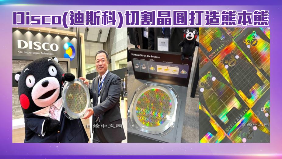 - 迪斯可用切割技術打造”晶圓熊本熊”。工程師和行銷負責人等14位員工組成團隊,花一年時間研究執行。最費心思的就是熊本熊的臉頰,為了透出紅色神韻,迪斯可利用矽材質的特性,切薄加工到了只透過紅色光的水平。