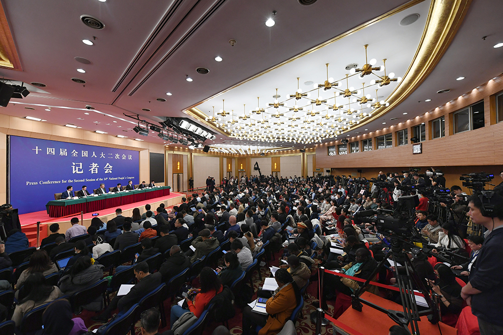 3月6日,十四屆中國全國人大二次會議經濟主題記者會舉行,邀請國家發展和改革委員會主任鄭柵潔、財政部部長藍佛安、商務部部長王文濤、中國人民銀行行長潘功勝、中國證券監督管理委員會主席吳清就發展改革、財政預算、商務、金融證券等相關問題回答中外記者提問。