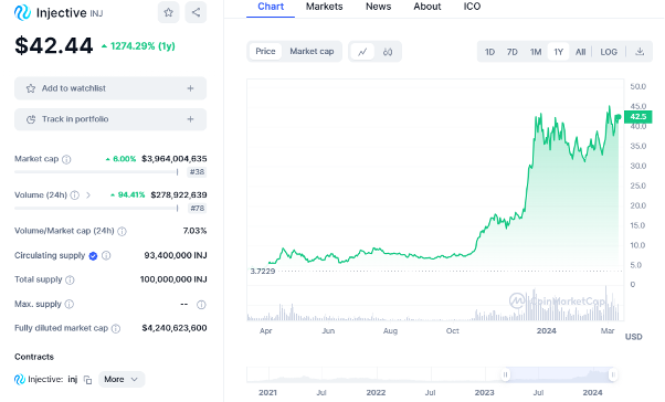 目前,INJ 代幣的交易價格為 43美元,當日上漲 7%。預計注入代幣將突破投資者一直在密集囤積的 50美元至60美元之間的支撐位。