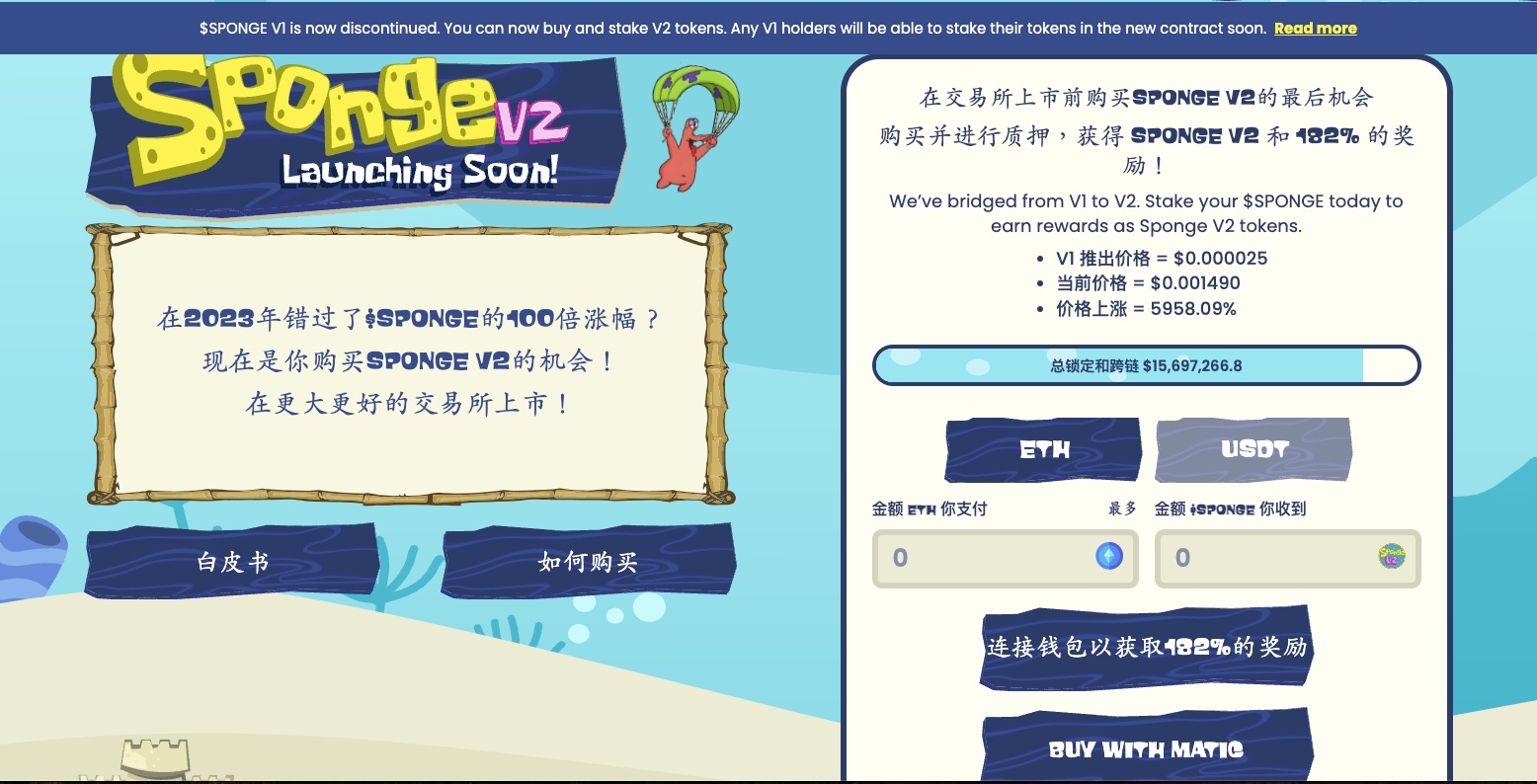 雖然 200% 的回報率是一個很好的目標,但新推出的名為 Sponge V2 的代幣可能會提供更大的上升空間。Sponge V2 ($SPONGE) 是 Polygon 網絡上傳奇的 Sponge 模因幣的轉世。