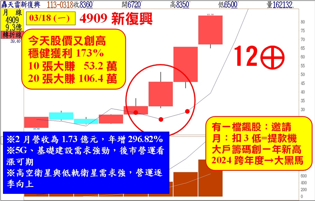 🚩新復興:轉折扣三低,創高賺173%