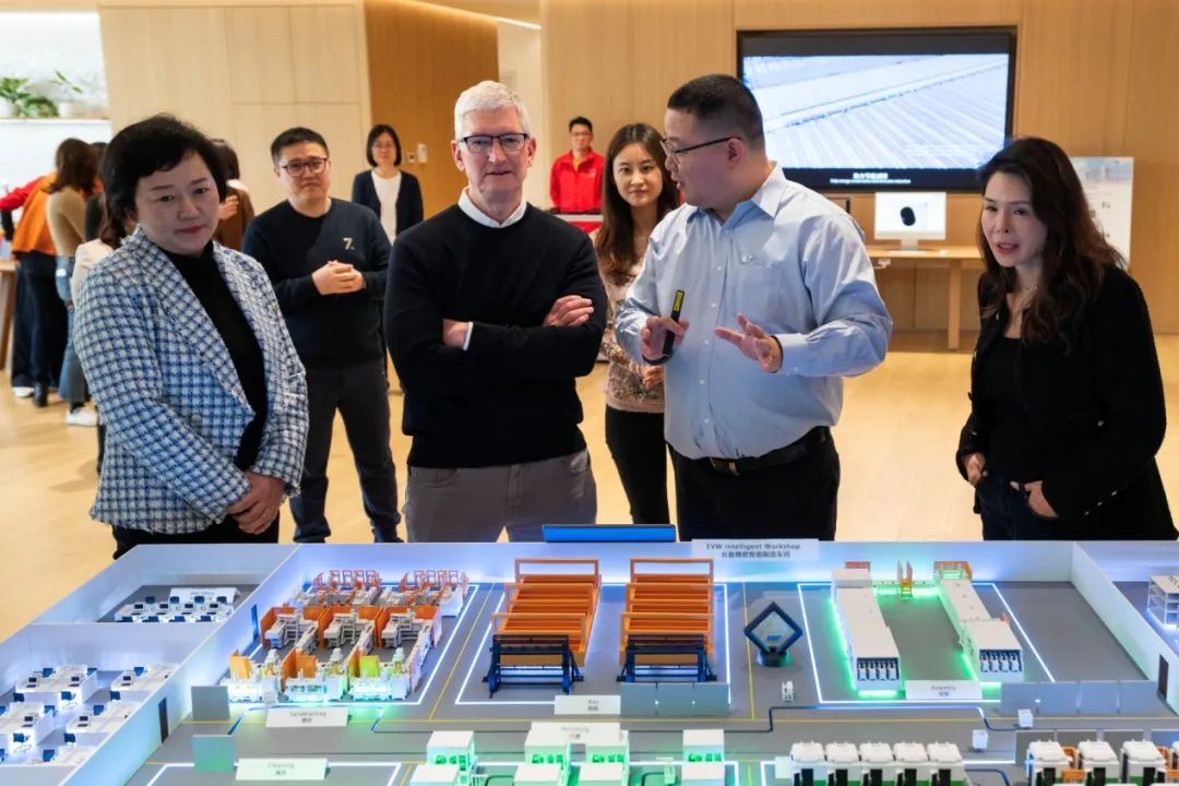 3月20日,蘋果CEO蒂姆•庫克現身上海蘋果中國總部,與三大供應商代表比亞迪、藍思科技、長盈精密進行交流。比亞迪董事長王傳福、藍思科技董事長週群飛、長盈精密總經理陳小碩等高管現場集中展示了其在智慧製造、綠色製造以及人才培養方面的最新成果和進展。