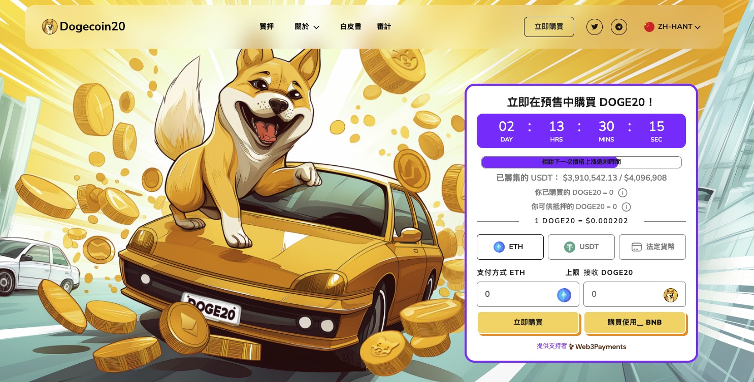 專案的關鍵賣點包括允許質押賺取被動收入,通過乙太坊實現更快交易,一個預售階段確保機會平等更環保等。Dogecoin20 代幣名稱為 $DOGE20,成功繼承了 Dogecoin 家族傳統與創新,目前正以$0.00014美元預售。